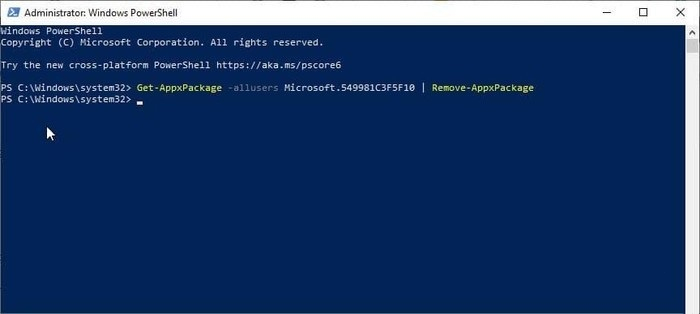 Get-AppxPackage-allusersMicrosoft.549981C3F5F10|Remove-AppxPackage