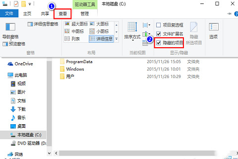 2、首先随便打开一个文件夹,并在“查看”里将“隐藏的项目”给勾选上;