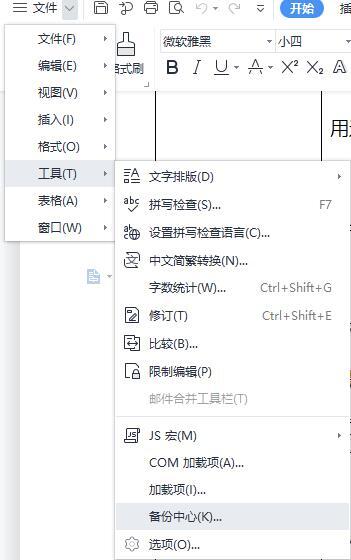 2.依次点击工具-备份中心;