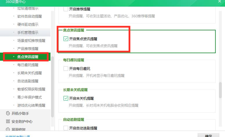 3.在下方找到焦点资讯提醒,将右侧的开启焦点资讯提醒取消勾选即可;