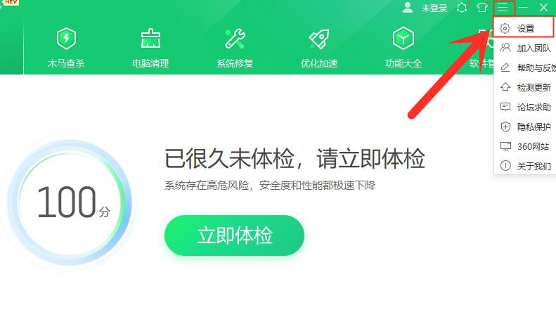 1.首先打开360安全卫士,点击右上角选项,点击设置进入;