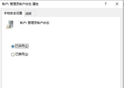 3.将右侧的"账户:管理员状态"设置打开,选择"已启用",点击"应用"退出即可。