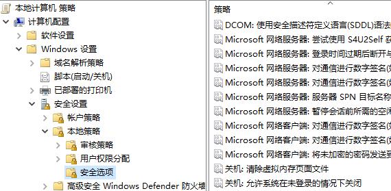 2.在"本地组策略编辑器"中依次展开左侧的"计算机配置"-"Windows配置"-"安全设置"-"本地策略"-"安全选项";