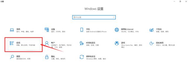 2.在windows设置界面选择应用选项;