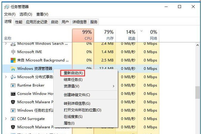 与此同时按着Ctrl+Shift+Esc键,寻找资源管理器,挑选 资源管理器后,立即点击右下方,点击重启或点击鼠标右键,点击重启,就ok了。