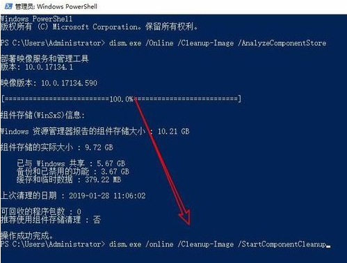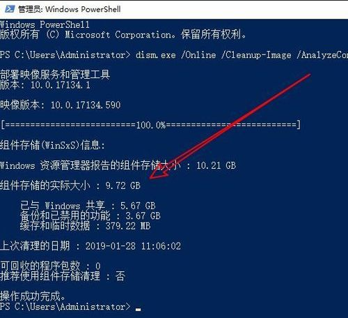 3、接着就会弹出Windows10的PowerShell窗口,在窗口中输入命令dism.exe /Online /Cleanup-Image /AnalyzeComponentStore,然后按下回车键运行该命令。