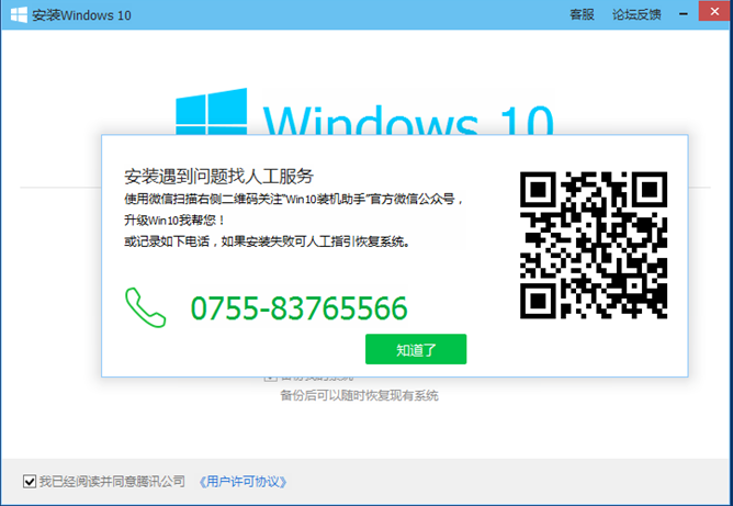 3、先提醒用户人工服务的电话和二维码,以防在安装过程中出现意外,不知道该如何反馈