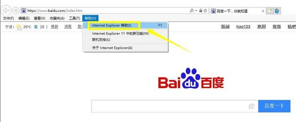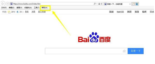 第一步,打开ie浏览器,再找到左上角的“帮助”并点击。