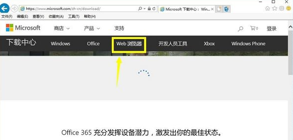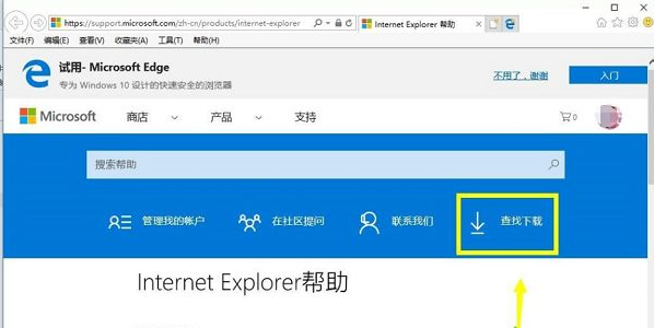 第三步,进入到微软官网,找到并点击“查找下载”。然后在查找下载页面点“web浏览器”。