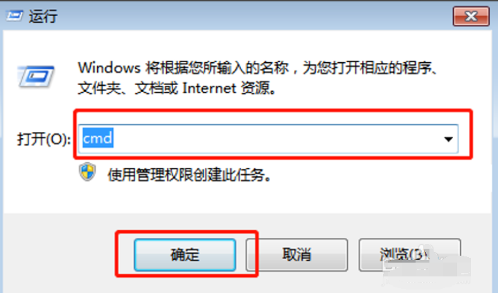 1. 在键盘上按下“win”+“R”调出运行窗口,随后输入命令“cmd”并点击“确定”。