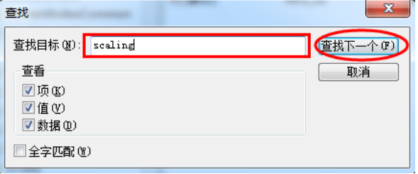 5,输入”scaling“,点击”查找下一个“。