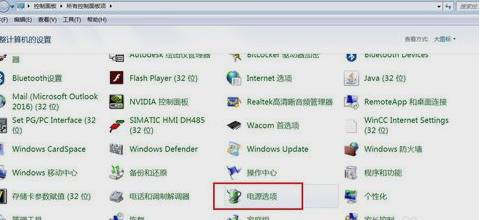 打开“开始”,点击进入“控制面板”,然后找到“电源选项”