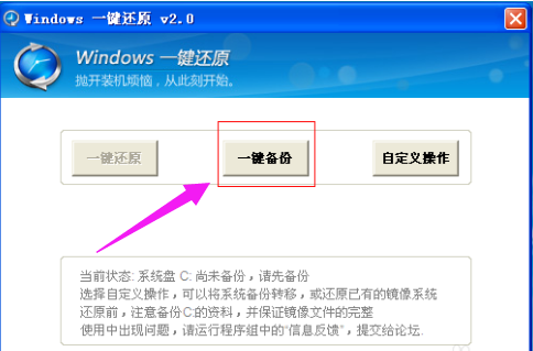 也可以在windows系统中,启动一键还原软件,在主界面中单击“还原系统”按钮: