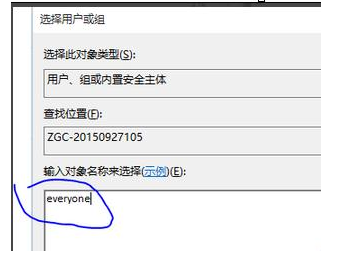 2.右键点击F盘,点击属性--安全--高级---点击添加--在对象名称里面输入everyone---点击确定。如图所示: