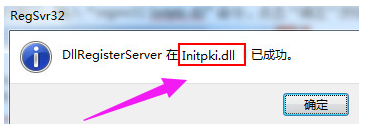 待看到“DLLRegisterServer在Initpki.dll已成功”提示窗口,点击“确定”就完成了。