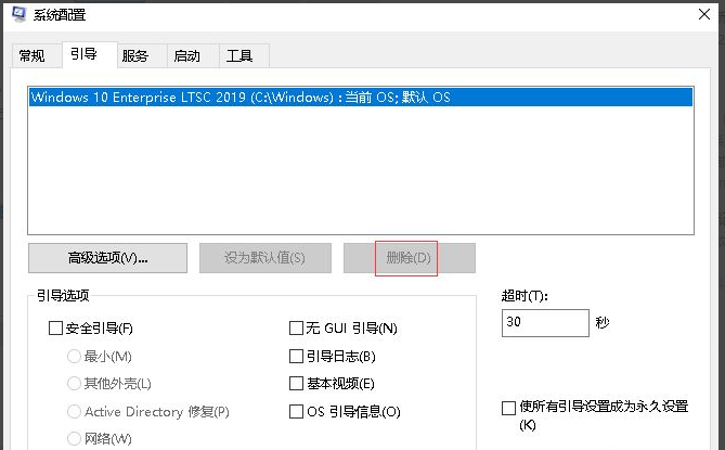 5、在“引导”选项卡下,我这里是作参考,一般下面有两个系统,选择多余的那个系统,会发现“删除”按钮是可以使用的,单击“删除”按钮。