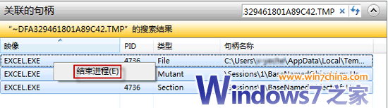 将调用文件的进程选中,右键鼠标,点击“结束进程”。