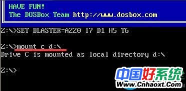 2、之后将下载下来的debug.exe放入磁盘根目录,以d盘为例,在dosbox中输入mount c d:\并按回车执行,如图所示: