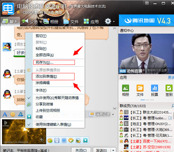 七、右键单击该图片,可以将该图片保存到本地,也可以将该图片保存到QQ表情。