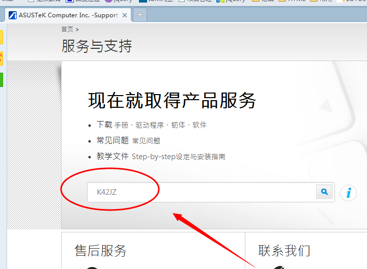 5.搜索笔记本相应的型号,如K42JZ。