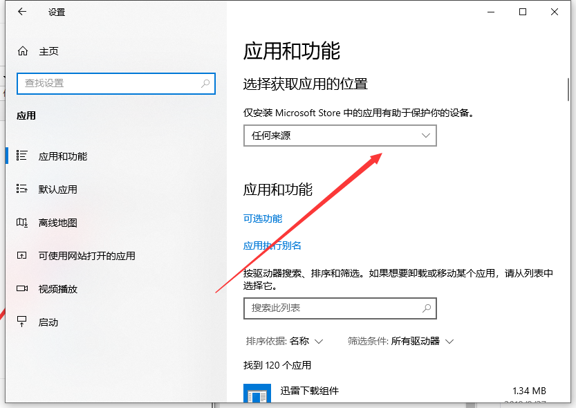 3、单击下拉符号选择“任何来源,但在安装Microsoft Store之外的应用前向我发出警告”选项即可;