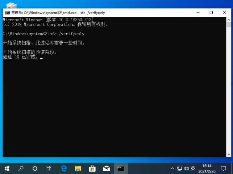 2、在 CMD 命令提示符中输入 sfc /verifyonly 可以检查修复系统。