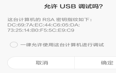 和电脑连接之后,系统会发一个允许USB调试吗的弹出窗口,点击确定。
