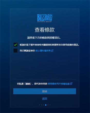 4、继续下来需要勾选暴雪的服务条款,全部勾选就行了。然后点“继续”,这里可能出现人机验证码,如果出现人机验证码的话,按照要求选择指定的图片,然后点提交即可。如下图