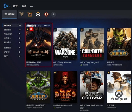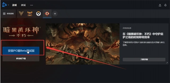 9、注册完后登录国际服战网就能够找到暗黑破坏神不朽的国际服了,点击进去就能登录到游戏中了。