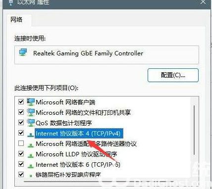 3、路径:控制面板 - 网络和 Internet - 网络和共享中心。点击连接的网络,打开属性,以太网 属性窗口,双击打开 Internet 协议版本 4 (TCP/IPv4)