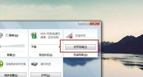 3、找到“windows移动中心”,我们可以看到无线关闭,选择“打开无线”。