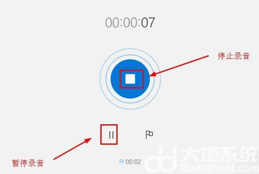 4、用麦克风说话的声音现在就可以开始录制了,可以根据自己需要暂停录音或者停止录音。当然还可以添加录音标记。可以方便以后自己录音查看。