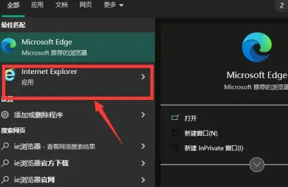 1、电脑左下角搜索框中输入ie浏览器搜索,并点击打开ie浏览器,会自动变成打开edge浏览器