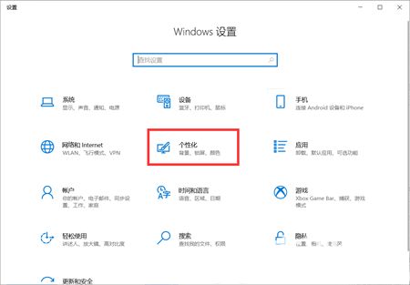 2、点击个性化进入相关设置。
