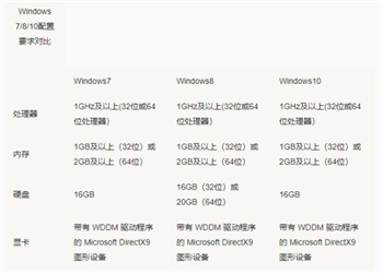 进行Win10的配置要求研究之前,我们先来看看微软给出的Windows10的配置要求,究竟与之前的Windows7、Windows8有些什么差别。