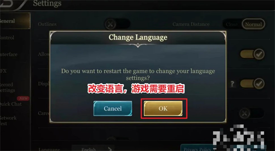 5.选择简体中文后,游戏提示需要重启,点ok重启游戏。