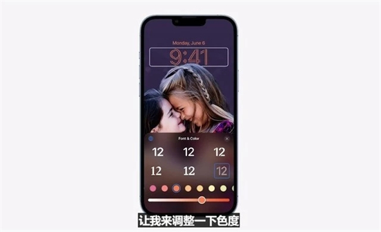 iOS 16对锁屏功能进行了全面革新:壁纸背景具有丰富的滤镜效果,长按之后还可以对整体的文字、样式进行进一步的调整。