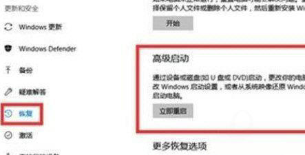 6、可以单击“更新和安全”来选择退出帐户后恢复高级启动