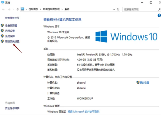 3、接着玩家在系统界面中选择“高级系统设置”。