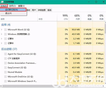 第四步,按下键盘上的【Ctrl+Alt+Delete】快捷键来调出电脑的【任务管理器】窗口,接着选择【文件】选项,然后再选择【运行新任务】功能。