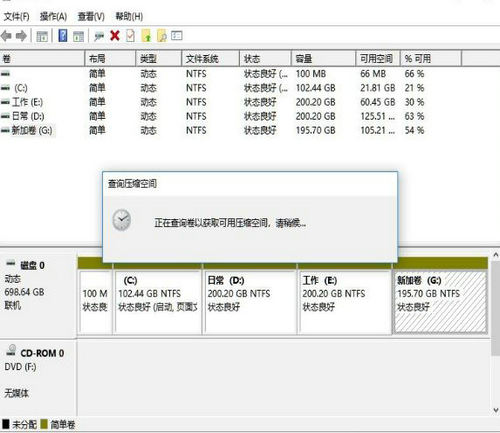 2、在分区列表中,右击分区的部分,并选择“压缩卷”
