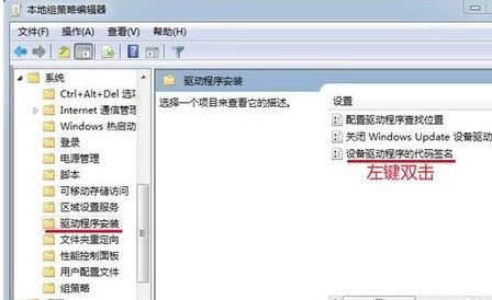 3、找到:设备驱动的代码签名,并双击鼠标左键:设备驱动的代码签名;