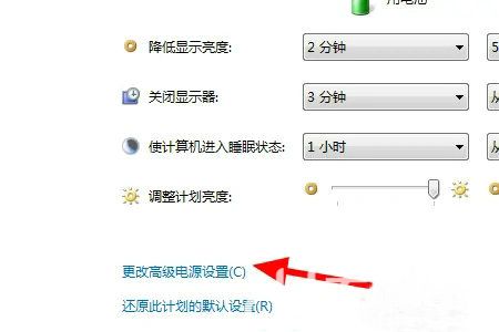2、开始—控制面板—硬件和声音—电源选项—更改计划设置—更改高级电源设置;