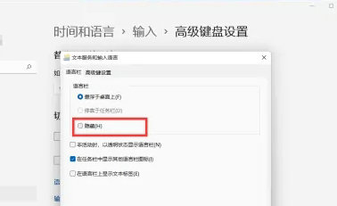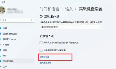 用户想要把windows11语言栏关掉,但是不知道怎么操作,这时候我们要打开电脑上的时间和语言选项,然后点击高级键盘设置,这时候我们就能看到语言栏选项啦,选择隐藏选项确定保存就好了,这样我们就能将语言栏关掉咯,如果想打开就不要选择隐藏即可。