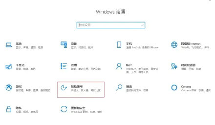 2、在Windows 设置界面中选择【轻松使用】进入