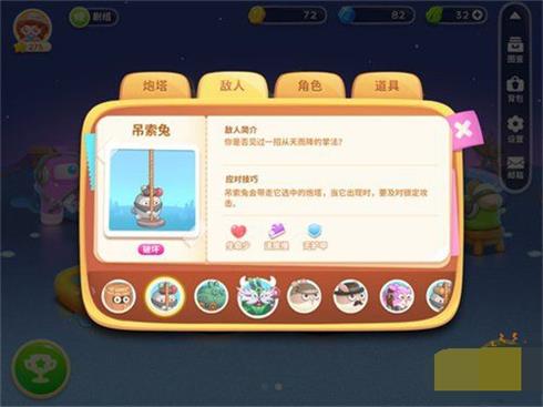 应对技巧:吊索兔会带走它选中的炮塔,当它出现时,要及时锁定攻击。