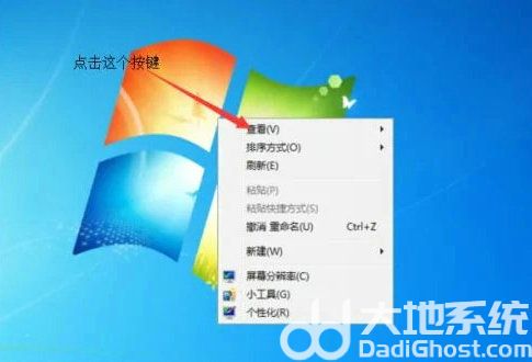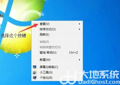 4、再在桌面鼠标右击桌面,选择查看下拉框。