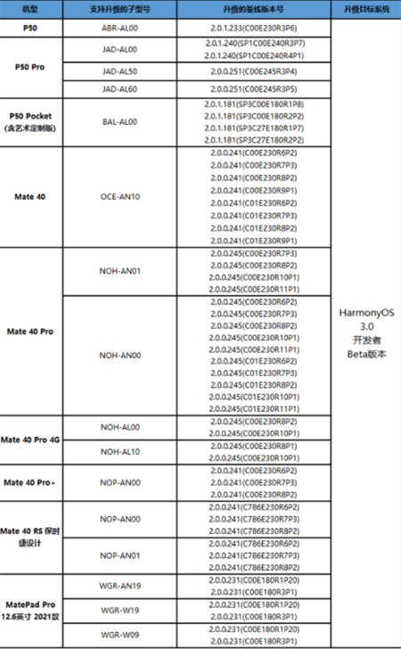 目前已经公布的首批支持鸿蒙OS3.0的华为手机有P50、P50 Pro、P50 Pocket 、Mate 40、Mate 40 Pro、Mate 40 Pro 4G、Mate 40 Pro+、Mate 40 RS 保时捷设计。
