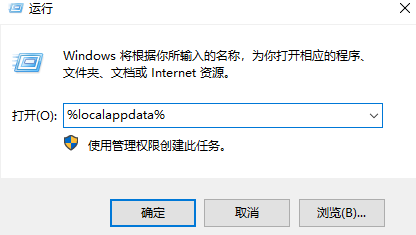 2、按下Win键+R键,输入 %localappdata%,点击确定。