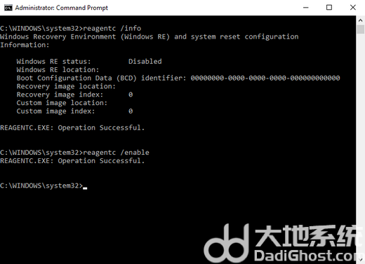 3. 如果提示已禁用,需输入“reagentc /enable”可以重新启用。